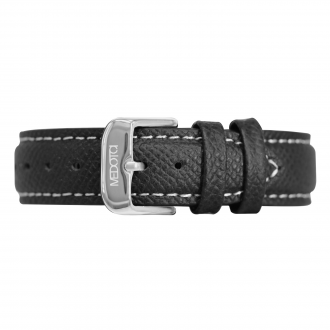 真皮錶帶 - 法國進口黑色荔枝紋真皮錶帶-銀釦