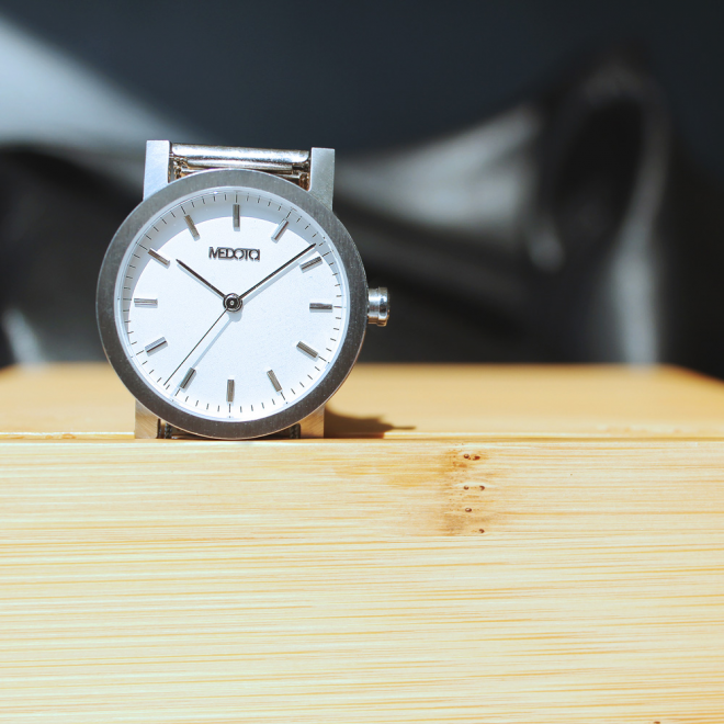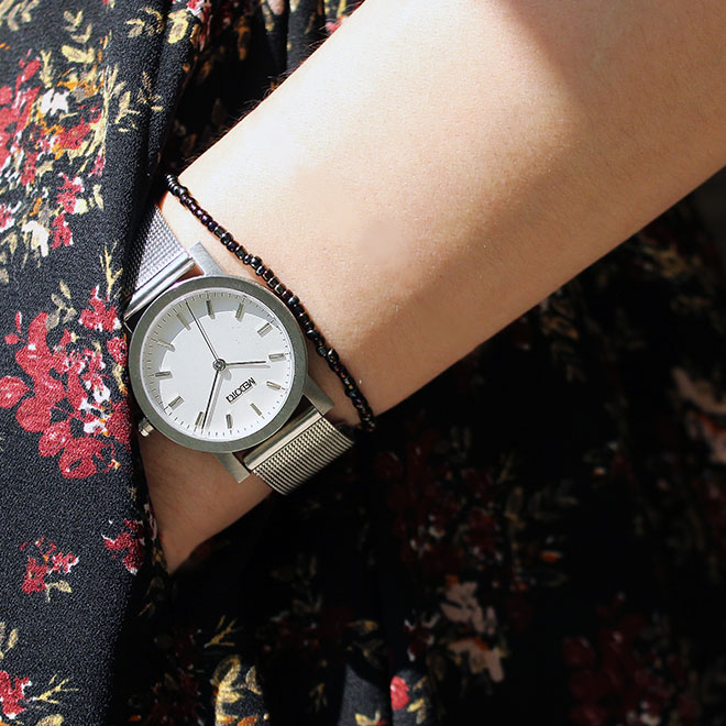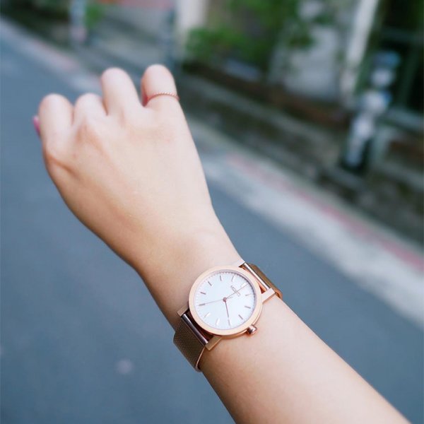 極簡輕薄系列–倒影款獨創0.8mm厚度斜面12時位設計的錶款,透過細緻工藝製作成的指針及不銹鋼錶身搭配,傳遞出濃濃復古時尚感。錶款錶面採用抗磨損藍寶石水晶玻璃而機芯則選用瑞士製,是款男女皆可配戴的情侶錶,另可搭配尼龍錶帶。