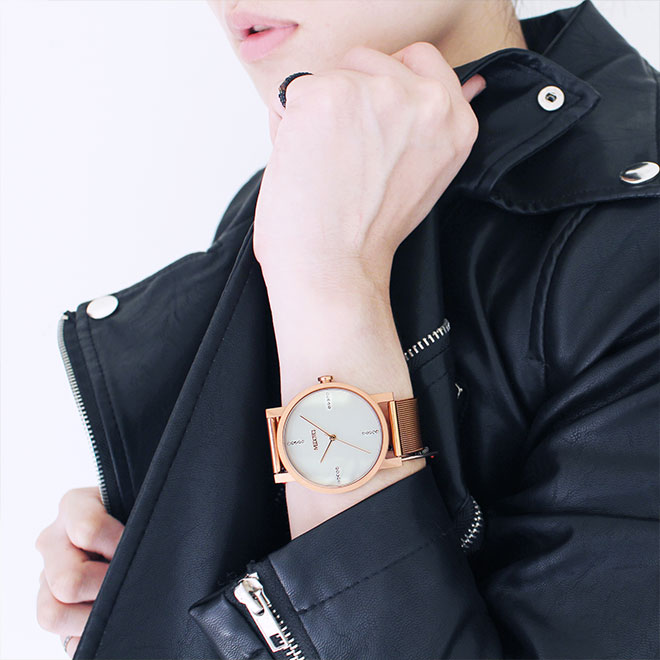 極簡輕薄系列–奢華款潔淨錶盤搭配閃爍施華洛世奇晶鑽製作的4時位設計,在任何場合都能成為焦點,展現出現代男女追求多變的有趣生活態度,是款不容錯過的亮眼錶款,全錶款採用霧面絲紋不銹鋼材質,並採用抗磨損藍寶石水晶玻璃及瑞士機芯。無論是情侶或是閨蜜都適合的對表,另可搭配尼龍錶帶。