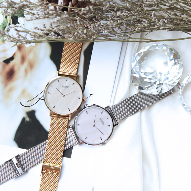 以希臘神話海洋女神名字命名的Thetis,靈感來自於浪漫的大海,將海洋中珍貴的貝殼作為錶款的主要基底,再運用美麗的珍珠點綴手錶的精緻感,錶殼與錶帶的部分則是以不鏽鋼為主。