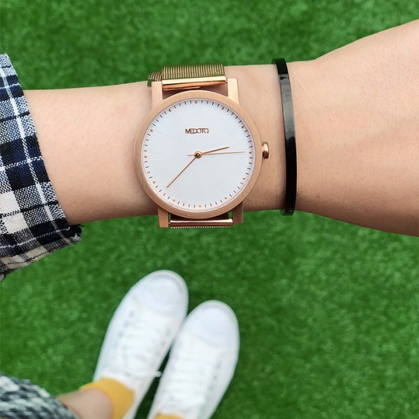 極簡輕薄系列–純粹款以極簡主義為設計主軸,潔淨優雅的錶盤及凹痕設計而成的羅馬數字與細緻工藝製作成的指針和不鏽鋼錶身搭配之下,傳達出最初與簡單的涵義,全錶款採用不銹鋼材質,並採用抗磨損藍寶石水晶玻璃及瑞士機芯。也是男女皆可配戴的情侶錶,另可搭配尼龍錶帶。