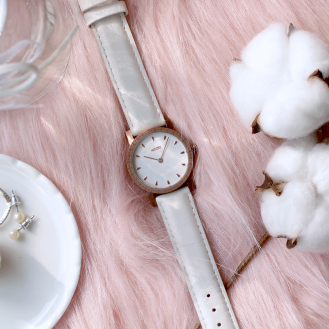 典雅的Autm系列是MEDOTA 2019第一個作品,將復古的錶殼刻上細緻的花圈,再添上咖啡金色做為主要色系,並與百搭的米白色錶帶結合,傳遞出這個季節裡浪漫的獨特柔美感,並也展現出女孩們漂亮外表內的細膩心思