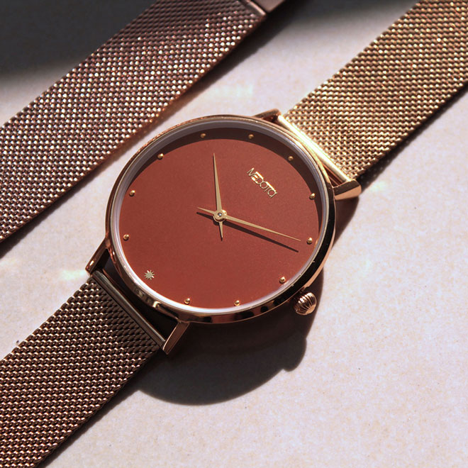 Chica系列是設計師透過簡單的顏色搭配,以最純粹、無過多裝飾的設計展現出不同面貌的女孩,搭配上不鏽鋼錶帶,為整體添上些倔強可愛的氣息