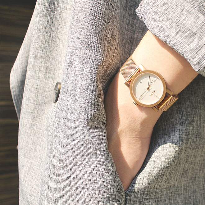 極簡輕薄系列–奢華款潔淨錶盤搭配閃爍施華洛世奇晶鑽製作的4時位設計,在任何場合都能成為焦點,展現出現代男女追求多變的有趣生活態度,是款不容錯過的亮眼錶款,全錶款採用霧面絲紋不銹鋼材質,並採用抗磨損藍寶石水晶玻璃及瑞士機芯。無論是情侶或是閨蜜都適合的對表,另可搭配尼龍錶帶。