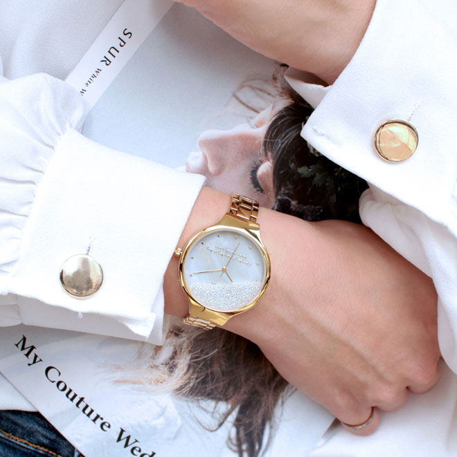 特殊的雙層錶殼設計,使夢幻的透明珠子能流動於典雅的天然貝殼錶面中,就如同女孩們浪漫的夢想隨著時間一點一滴成真。而於天然貝殼錶面上,我們也送給妳特殊的驚喜,希望當妳遇到挫折能時時刻刻告訴自己