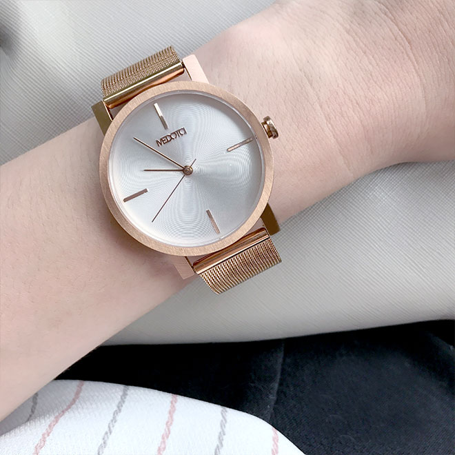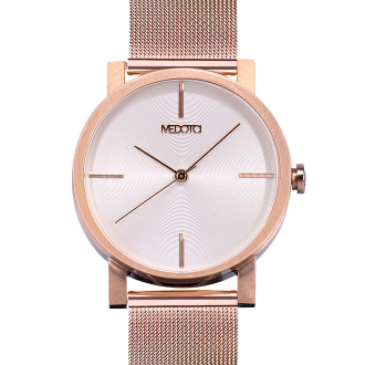 極簡輕薄系列-低調款螺旋紋路錶盤與獨創0.8mm厚度的簡單字釘條4時位結合,呈現極簡主義的新視覺感,錶殼採霧面絲紋鋼製作成,錶面則以抗磨損藍寶石水晶玻璃及瑞士機芯,全錶透過細緻工藝的製作,展現出的不只是極簡時尚品味,更是MEDOTA創新錶款的新思維。是款值得收藏的男女對錶,另可搭配尼龍錶帶。