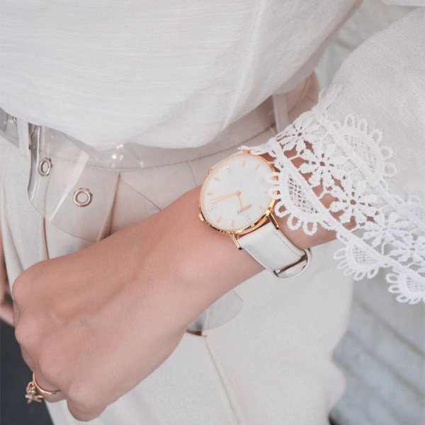 將柔和的貝殼錶面搭配上耀眼動人的鑽石,在與法國進口真皮錶帶做結合,使整體錶款增添幾分個性感詮釋出一位耀眼動人女性擁有勇敢外表和溫柔的內心的特質