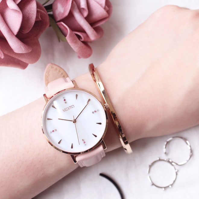 粉色真皮錶帶