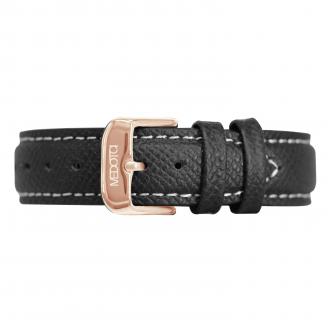 真皮錶帶 - 法國進口黑色荔枝紋真皮錶帶-玫瑰金釦