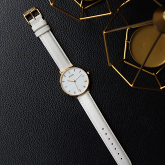 真皮錶帶 - 快拆式米白色真皮錶帶-玫瑰金釦