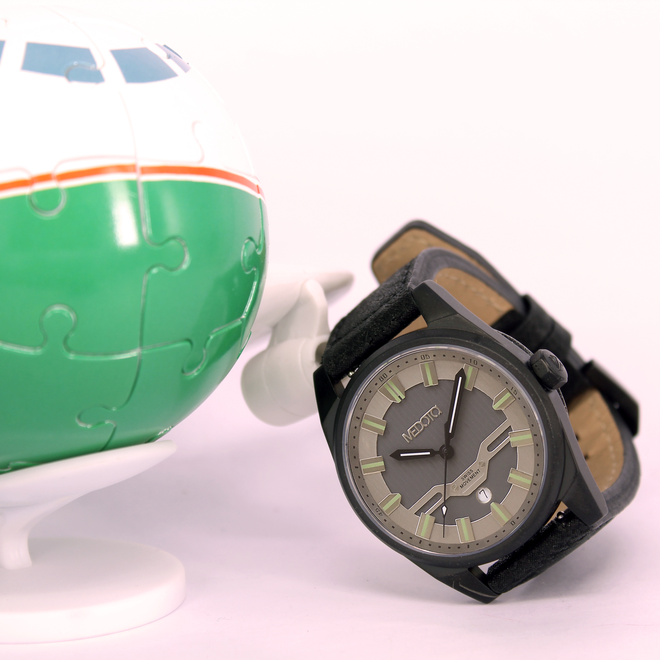 Caelum 飛行腕錶運用空軍的造型元素來設計,傳達給人感覺剛毅的軍錶形象。Caelum 飛行系列使用主題特性來代表成熟男性的基本特質,以強壯、威凜與個性的形象呈現。