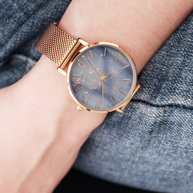 Twinkle系列以天然貝殼錶面為基底,錶面上的點點如繁星璀璨,閃耀出溫暖的光芒,象徵不管喜悅或寂寞,都有我們陪著妳