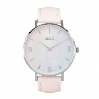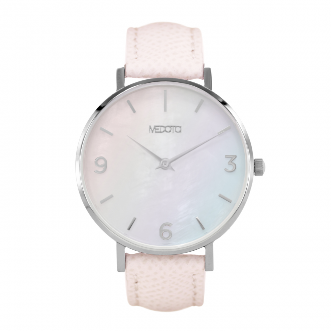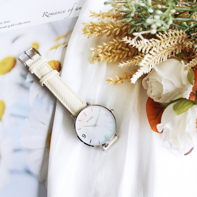 珍珠母貝具有獨特天然的紋路,透過精細的處理製成錶面,使配戴時,隨著不同角度的變化,
