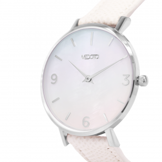 珍珠母貝具有獨特天然的紋路,透過精細的處理製成錶面,使配戴時,隨著不同角度的變化,
